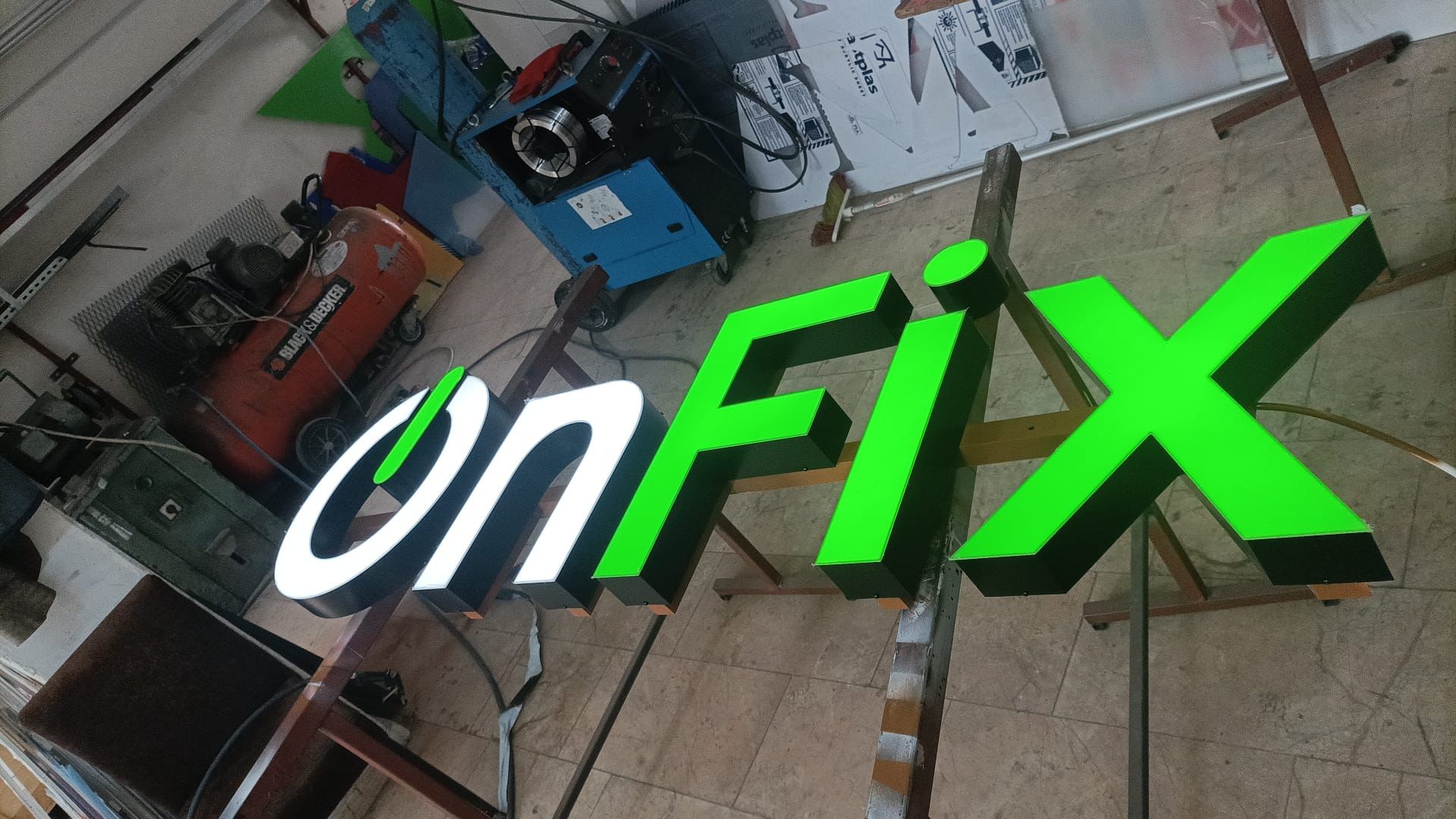 Productie van verlichte doosletters in de werkplaats